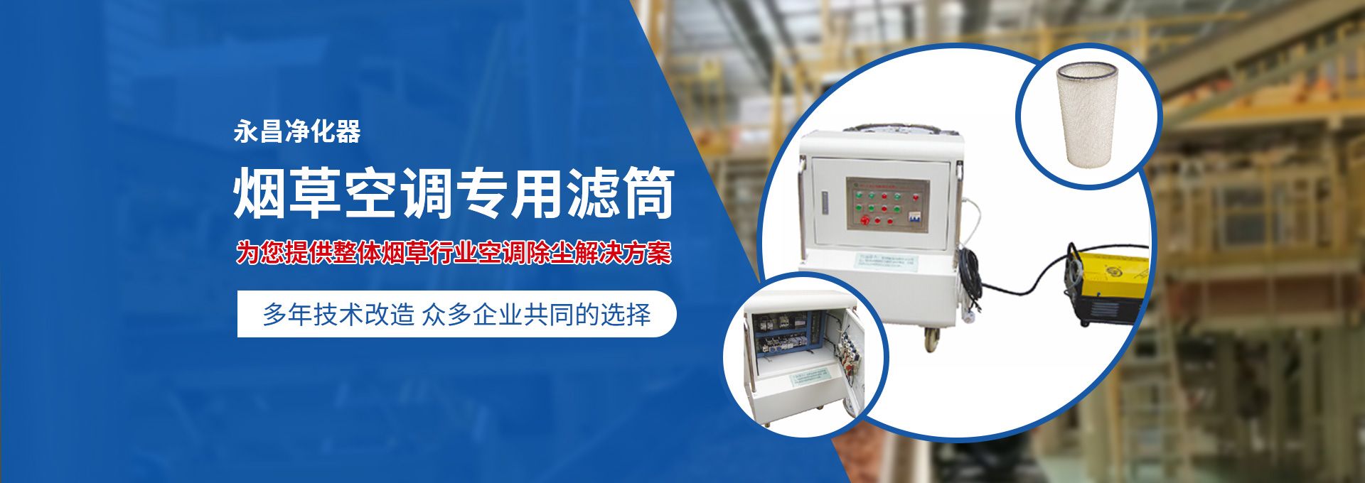 新鄉(xiāng)市永昌凈化器有限公司是生產煙草行業(yè)空調除塵專用濾筒的企業(yè)。注冊資金1000萬元。已通過ISO9001國際質量管理體系認證。對產品有嚴格的管理制度和售后服務。我公司以誠信、負責、守信譽、重質量的精神所生產的產品,近幾年來在煙草行業(yè)受到廣泛應用,并受到用戶的一致好評。 從一九九四年以來為煙廠的空調設備服務。十幾年來,我們不斷走出去請進來學習新技術。定期到用戶那里咨詢情況:互相交流,認真聽取寶貴意見,不斷提高產品質量。從經濟和安全,方便的角度出發(fā),根據(jù)煙廠濕度大的生產環(huán)境和濾筒收集到的含酸堿、氧化劑的粉塵。在空調箱工作狀態(tài)下我們頂著巨大的風壓危險在箱內停留了幾分鐘,認真查看濾筒工作情況,發(fā)現(xiàn)濾筒有并死狀態(tài),造成濾筒不過濾、不過風、壓差高的現(xiàn)象。經幾十次試驗分析,在標本兼治的原則下,有針對性的解決了這一問題。 我公司針對煙廠制絲、卷接包、混絲間、儲絲房、冷卻床、梗膨化等不同的生產環(huán)境,
